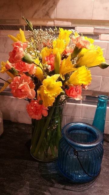 Maybe it’s too easy to find beauty in the flowers I often bring home from the supermarket? The assignment was to notice the beauty. I noticed beauty in the grocery store when I chose the three types (3 bunches for $15 was the special price). I noticed beauty when I decided how to arrange them in the vase. And I noticed again when I took the photo and chose it for the “beauty of the day” award.